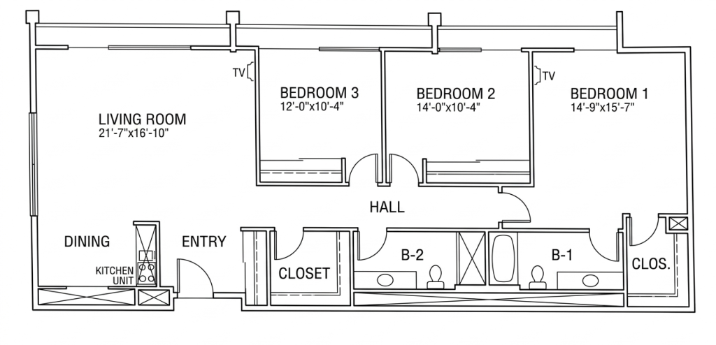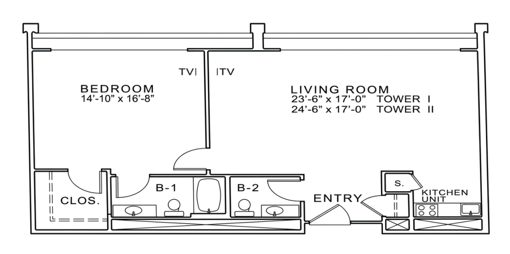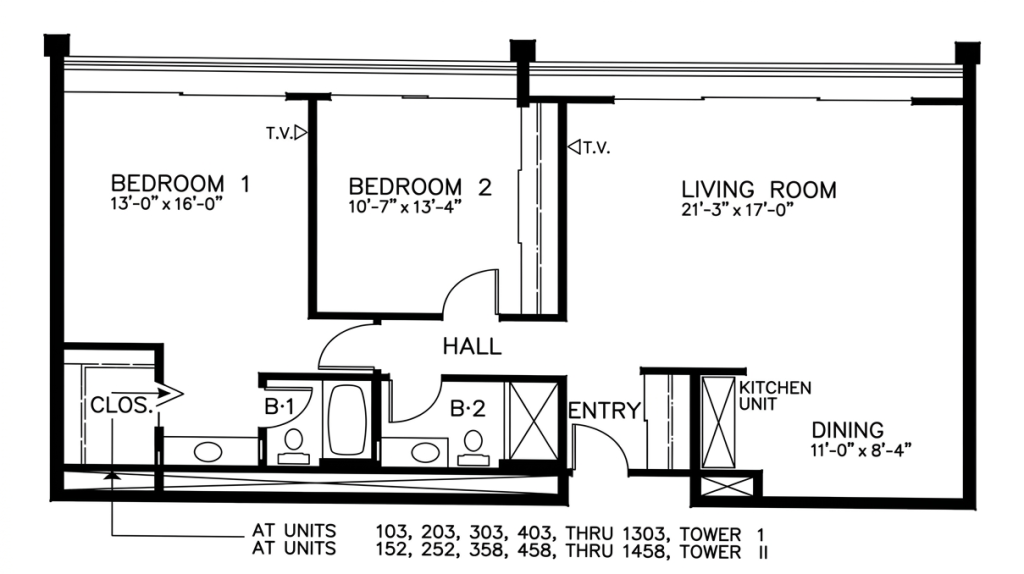 Note: Unit dimensions and/or square footage vary according to location within The Towers.
